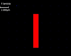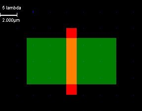 Na ekranie zobaczymy prostokątny obszar polikrzemowy jak na rysunku poniżej. Szerokość bramki nie powinna być mniejsza niż 2l.